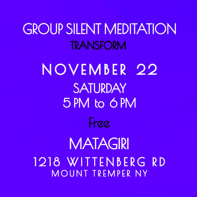 You are free to silently come and go, any time between 5 PM and 6 PM, during this Group Silent Meditation Experience.